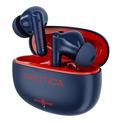 Nautica Hybrid Noise Cancelling (ANC+ENC) Wireless Stereo Earbuds with Charging Case T680 ( Navy-Red)