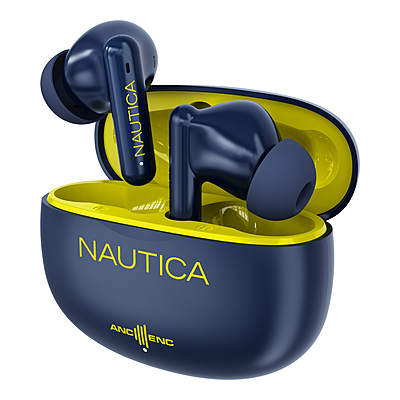Nautica Hybrid Noise Cancelling (ANC+ENC) Wireless Stereo Earbuds with Charging Case T680 ( Navy-Yellow)