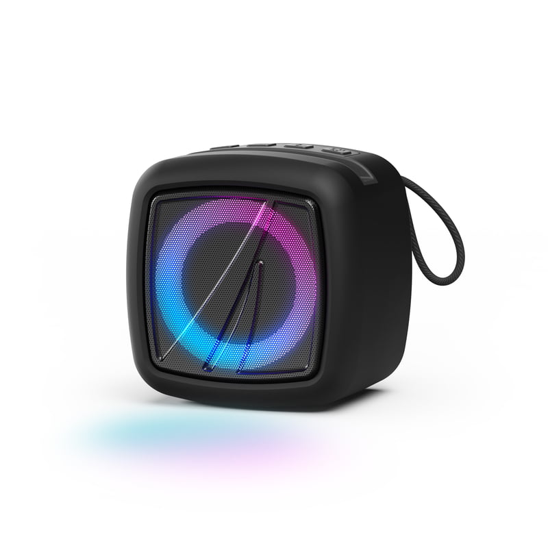 About Item The Nautica SP110 is a rugged, splash-proof Bluetooth speaker that delivers impressive 15W PMPO sound with deep bass and clear highs. It features TWS stereo pairing for 30W of power, a built-in phone stand for easy entertainment, and ambient lighting with 4 customizable modes. With USB, microSD, and AUX inputs, you can play music from any device, while the included carabiner and strap make it portable for any adventure. Enjoy up to 15 hours of playtime with quick charging, and easily control everything with its integrated buttons. The SP110 combines durability, style, and superior sound for all your music needs.