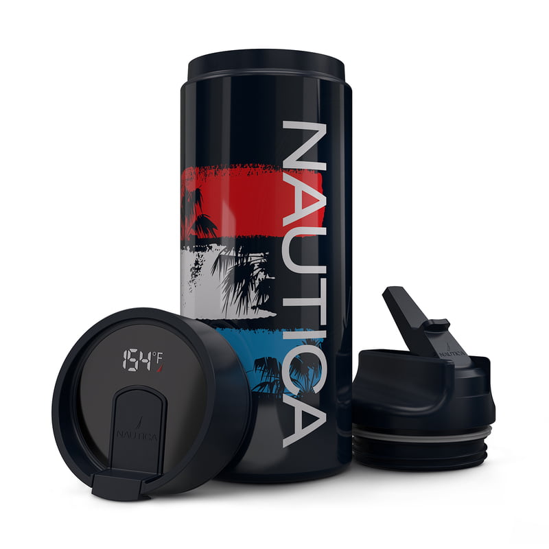 About Item The Nautica Sport Smart Tumbler is a next-gen hydration essential packed with smart features, durable construction, and sleek style. With triple wall vacuum insulation, it keeps drinks hot for 12 hours and cold for 24 hours, while the touch-sensitive smart lid displays real-time temperature in Fahrenheit. Leak-proof and IPX57 waterproof, this tumbler is built for adventurers, athletes, and everyday go-getters. The dishwasher-safe stainless steel design ensures long-lasting durability, while the 6-in-1 value pack gives you maximum versatility for any situation. Stylish, functional, and built for life on the move – this tumbler is a game-changer. ________________________________________ Key Features Triple Wall Vacuum Insulation – 12 hours hot, 24 hours cold. Smart Lid with Fahrenheit Display – See your drink’s temp instantly. Nautica Sail Light Indicator – Blue (cold), Yellow (warm), Red (hot). 100% Leak-Proof – Zero spills, zero stress. IPX57 Water Resistance – Splash-proof, adventure-ready. Premium 18/8 Stainless Steel – Dishwasher-safe & built to last. Ultra-Stylish Finish – Bold colors & sleek patterns. Patent-Pending Crossbody Strap – Fully adjustable & removable. Extra Straw Lid + 2 Straws – Cold drinks, sorted. 3 Size Options – 17 oz, 22 oz, 32 oz. Nautica Sport Smart Tumbler – Sip Smart, Stay Fresh, Live Bold.